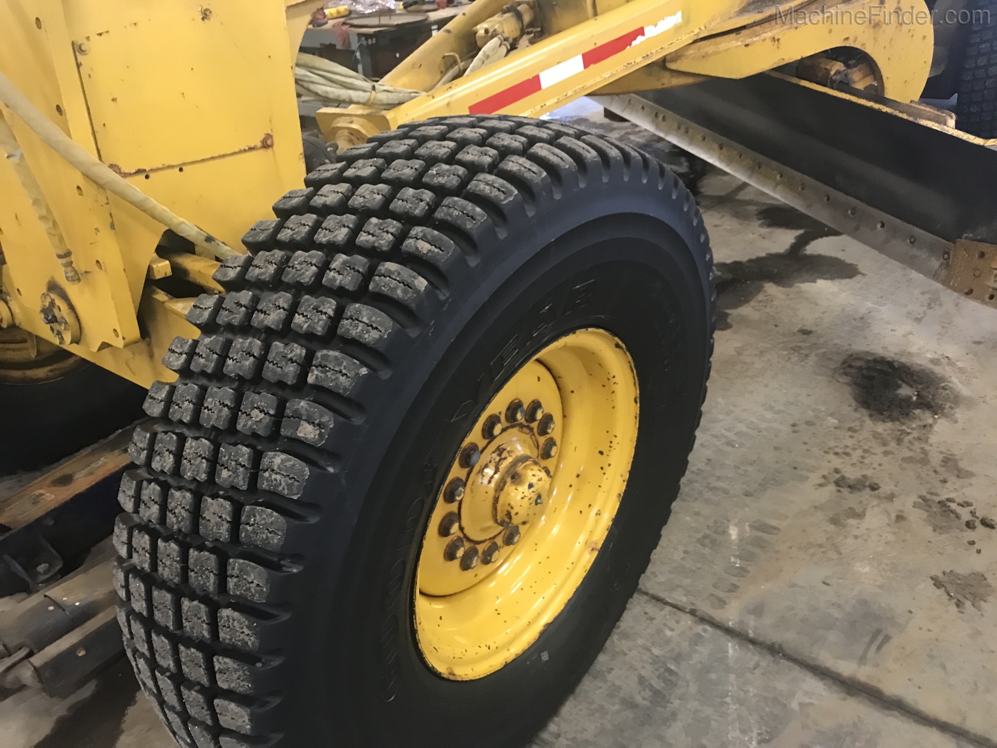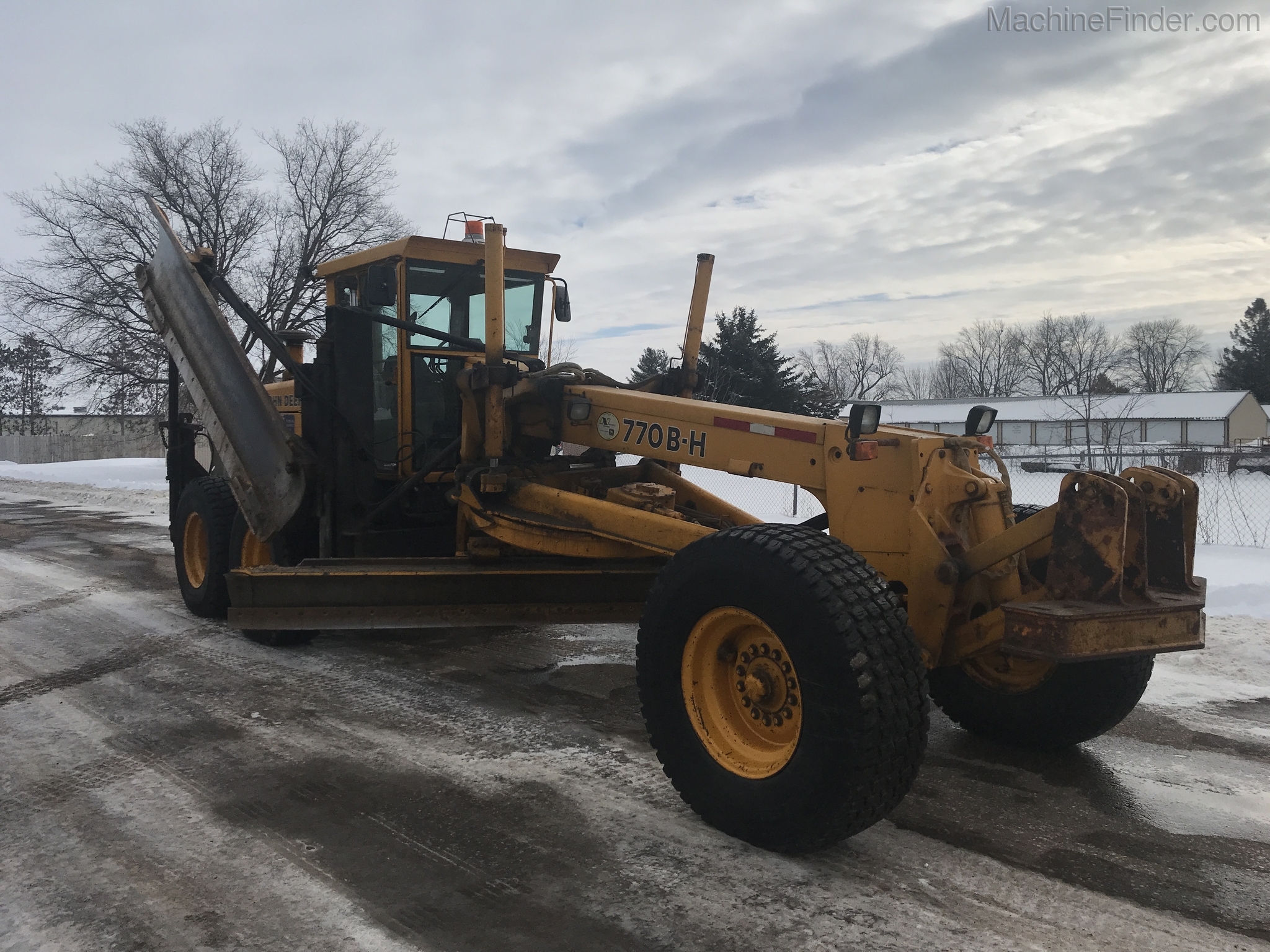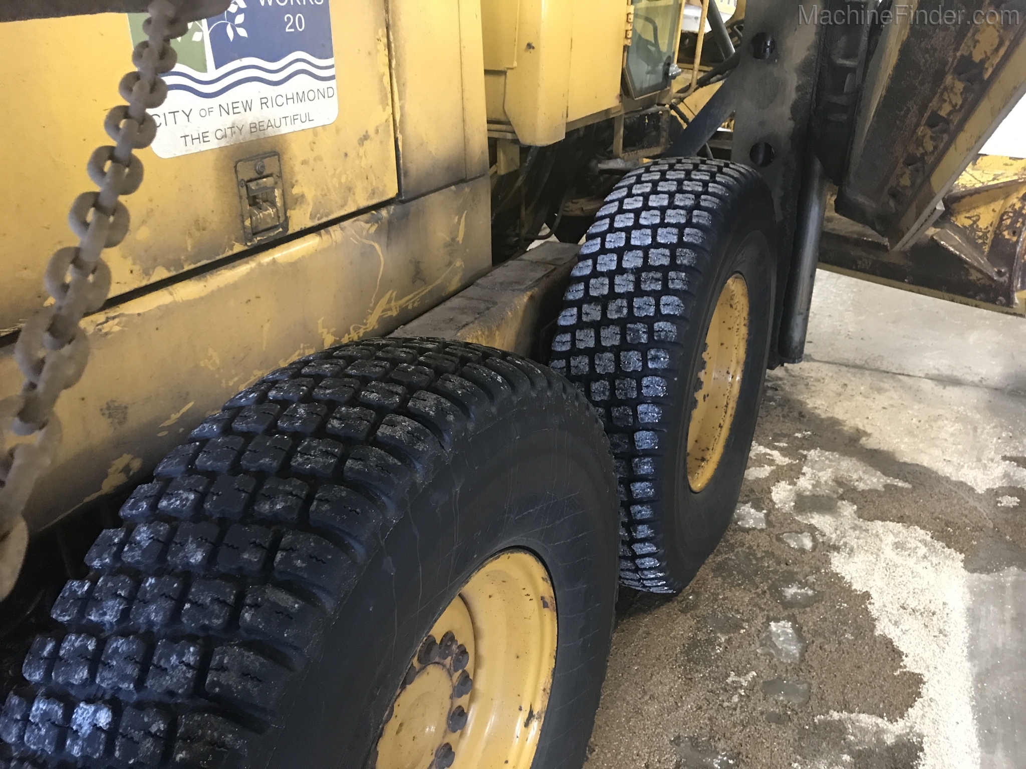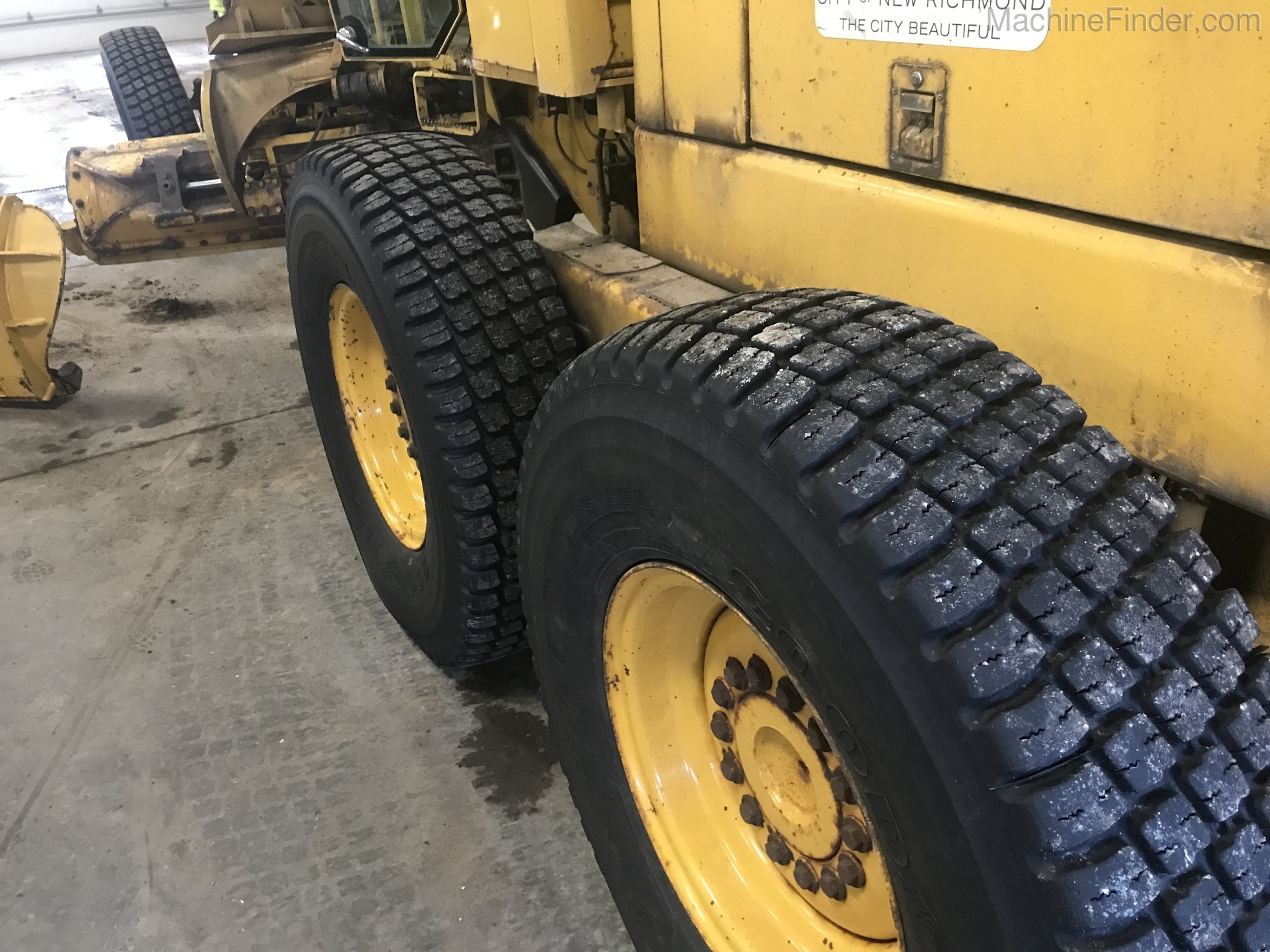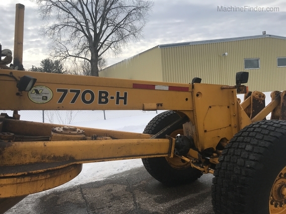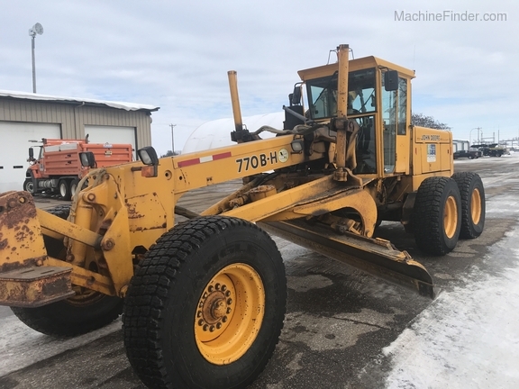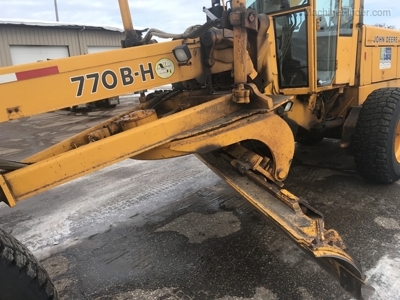 1 owner Govt. bought new from us in 1992 and kept inside. Rubber will be 1400-24 rubber GY snow wedges, all 80%. upper & Lower MB Slides are worn and circle wear inserts need tightening, main MB pin is good. Lift cylinder saddle yokes have slight bushing movement. steering system was good at each wheel and had some mvmnt at the center knuckle but not bad. steering cylinders and wheel knuckle bushings were tight. alot of grease all over. straight clean 770BH with front lift and wing. has complete history. Engine and Transmission have no major repairs. original paint almost no rust. NO SCARIFIER TO COME WITH MACHINE