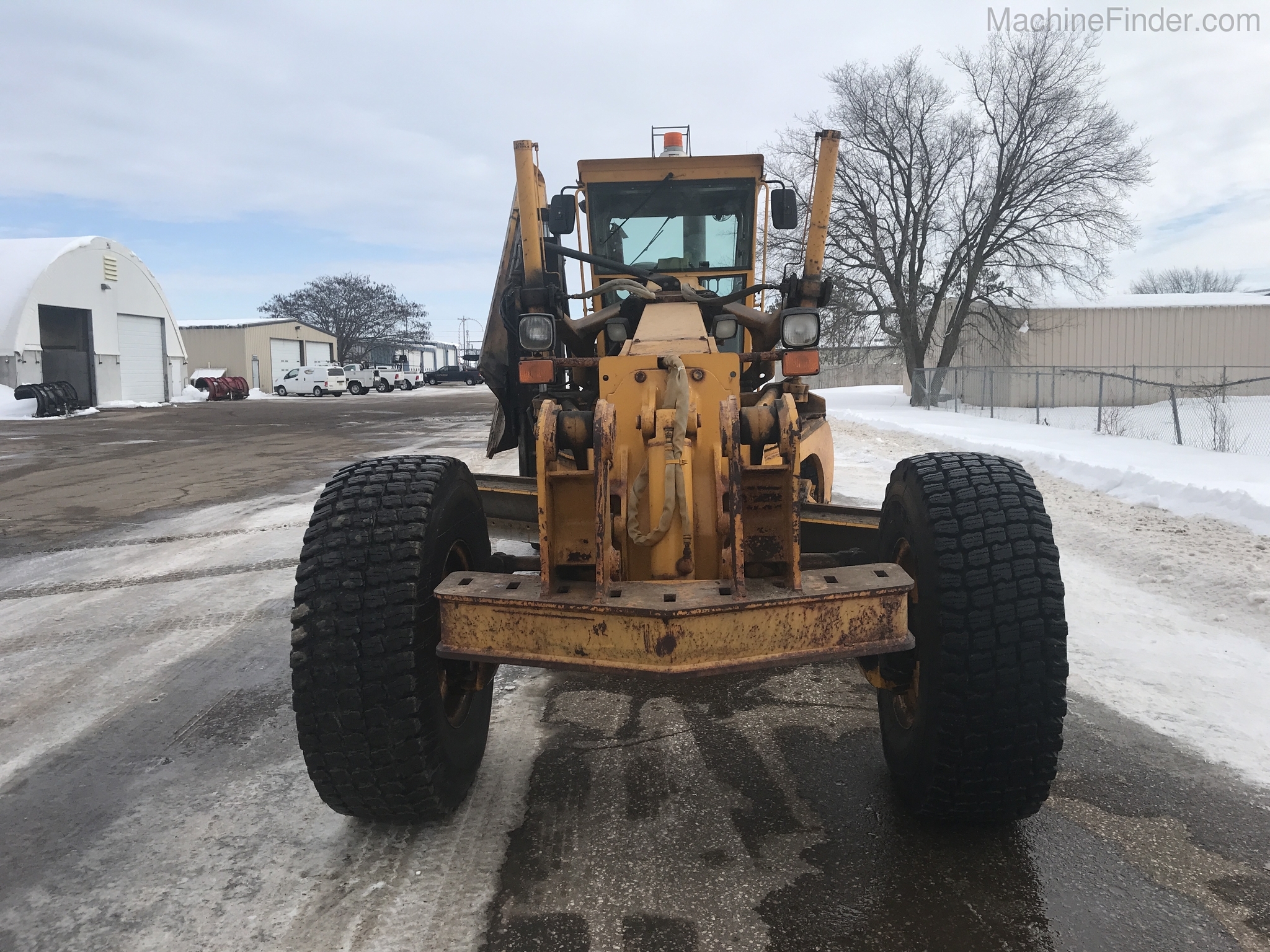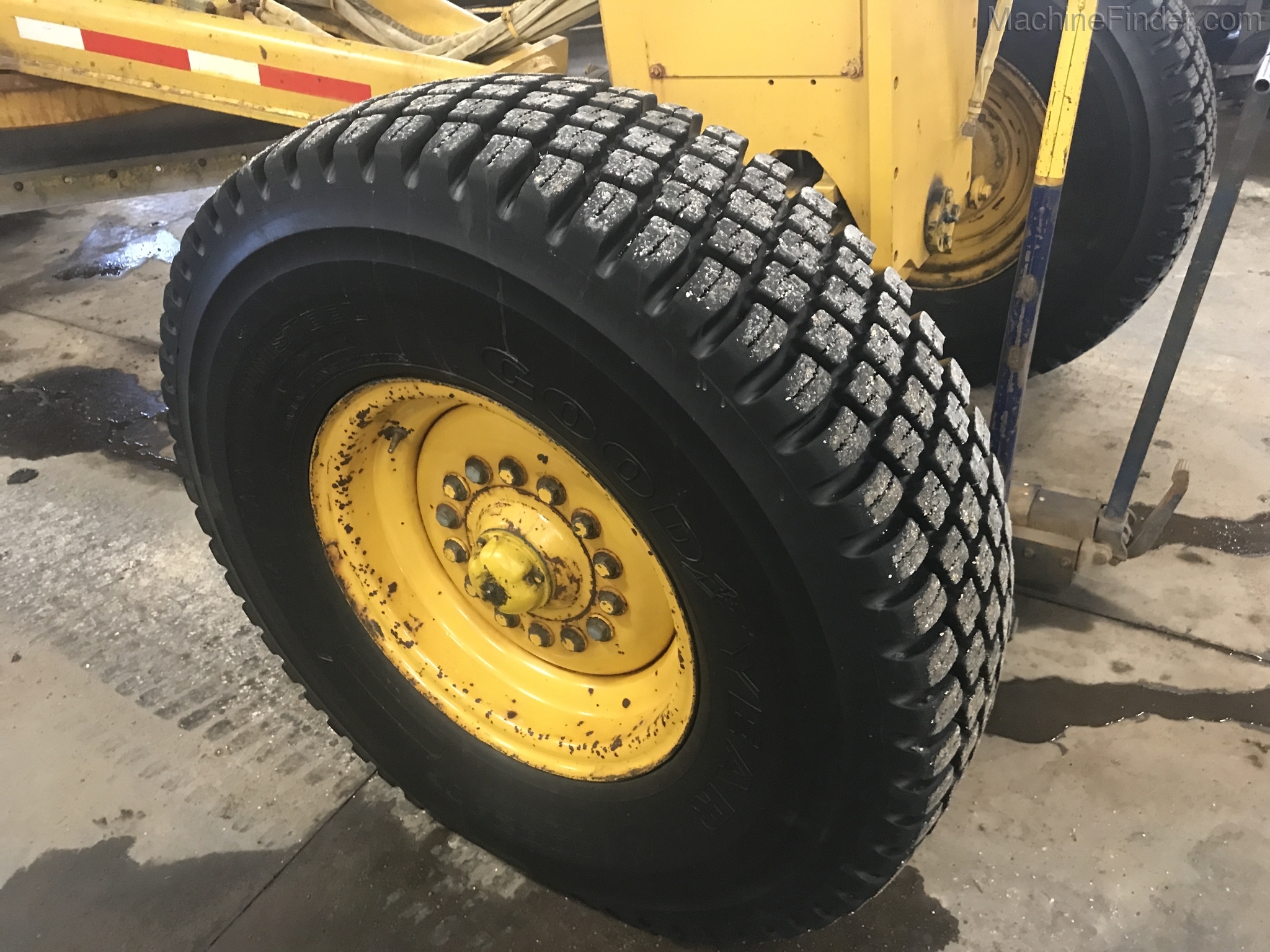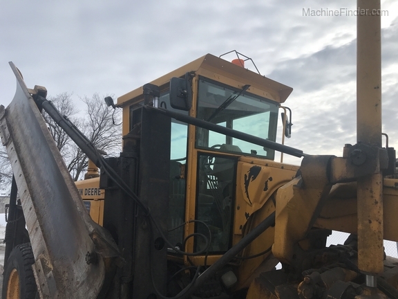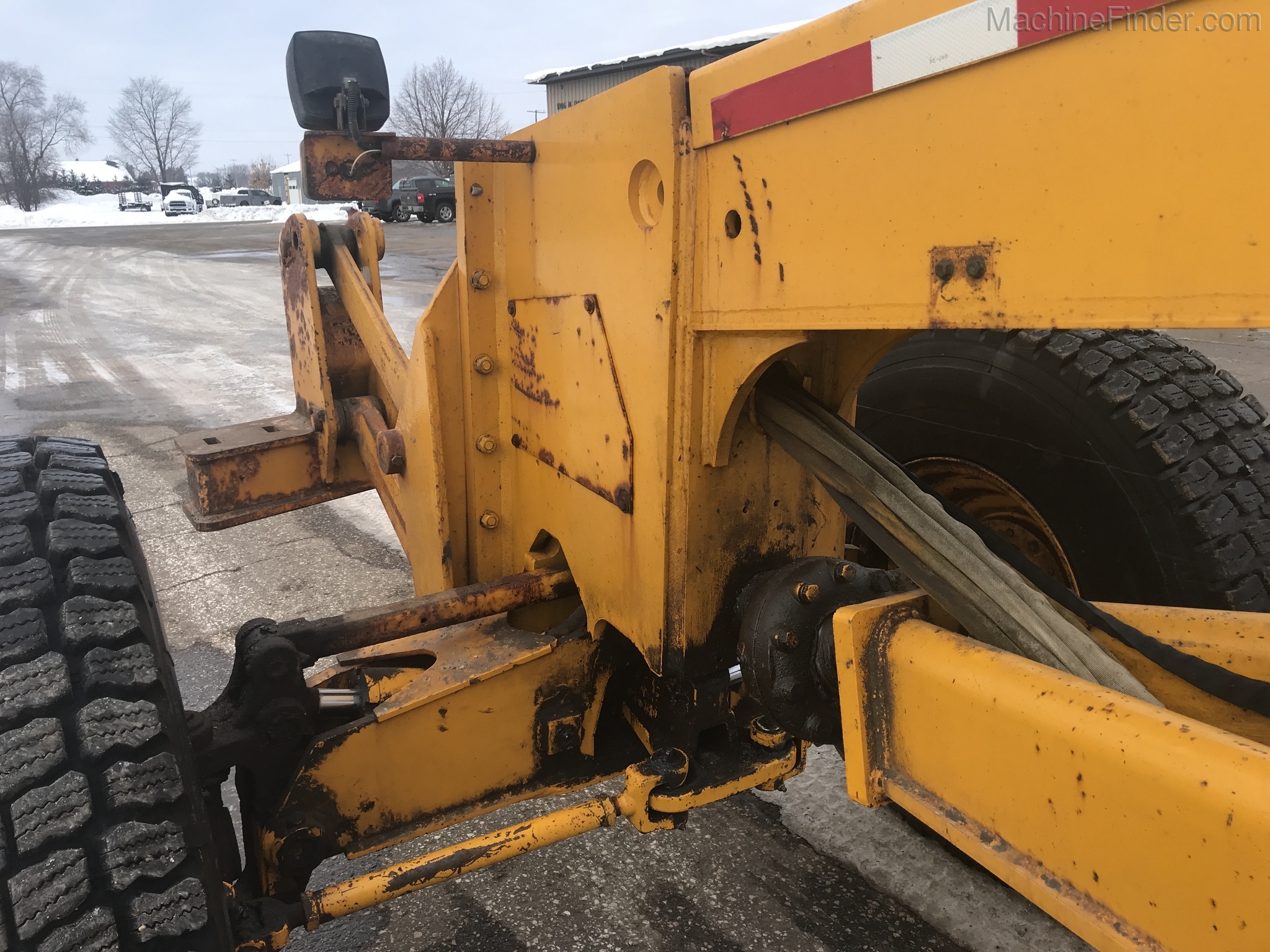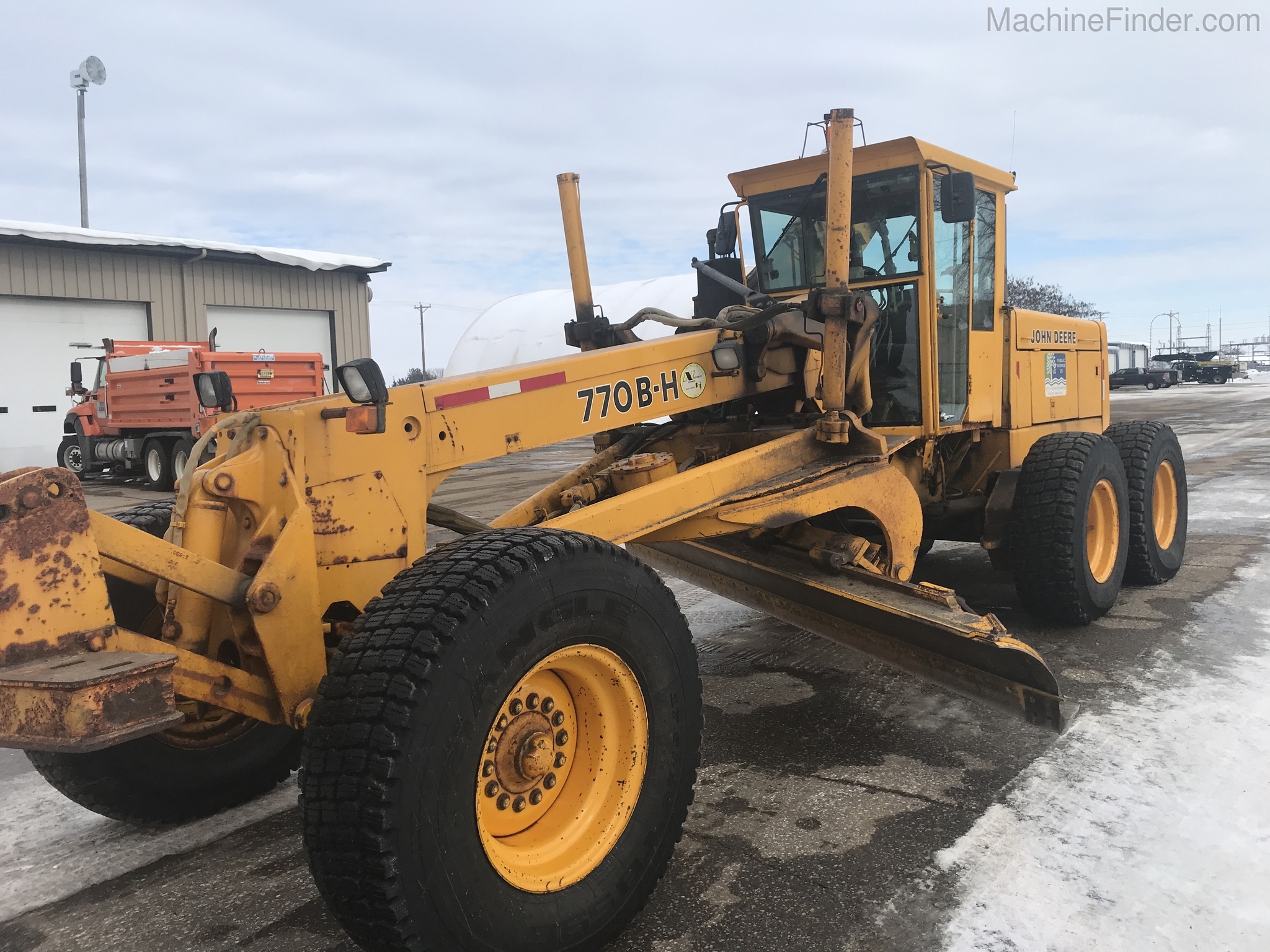 1 owner Govt. bought new from us in 1992 and kept inside. Rubber will be 1400-24 rubber GY snow wedges, all 80%. upper & Lower MB Slides are worn and circle wear inserts need tightening, main MB pin is good. Lift cylinder saddle yokes have slight bushing movement. steering system was good at each wheel and had some mvmnt at the center knuckle but not bad. steering cylinders and wheel knuckle bushings were tight. alot of grease all over. straight clean 770BH with front lift and wing. has complete history. Engine and Transmission have no major repairs. original paint almost no rust. NO SCARIFIER TO COME WITH MACHINE