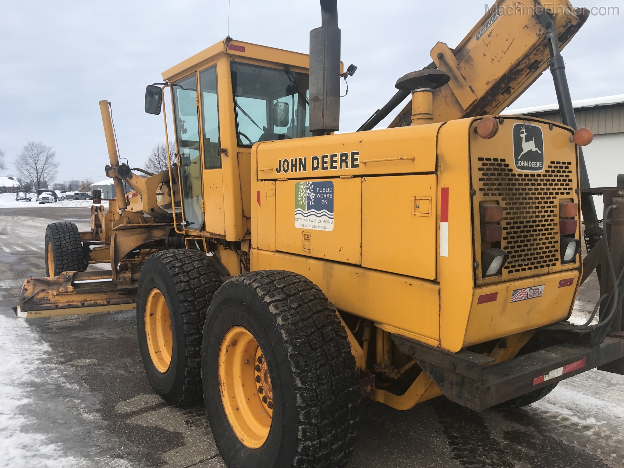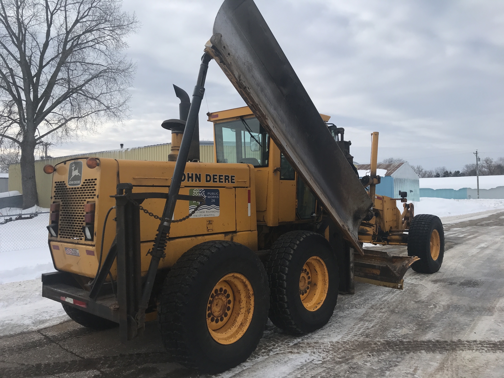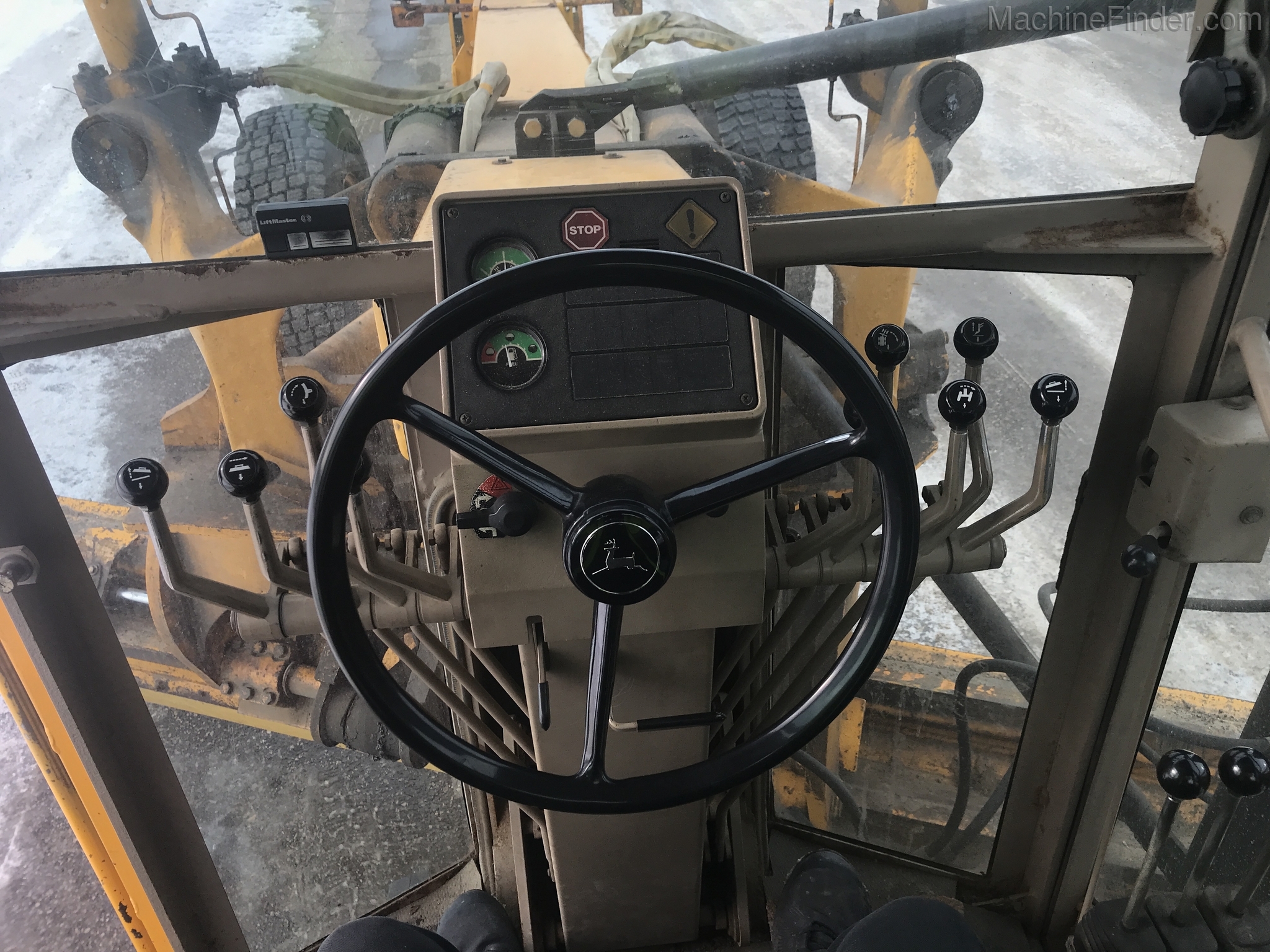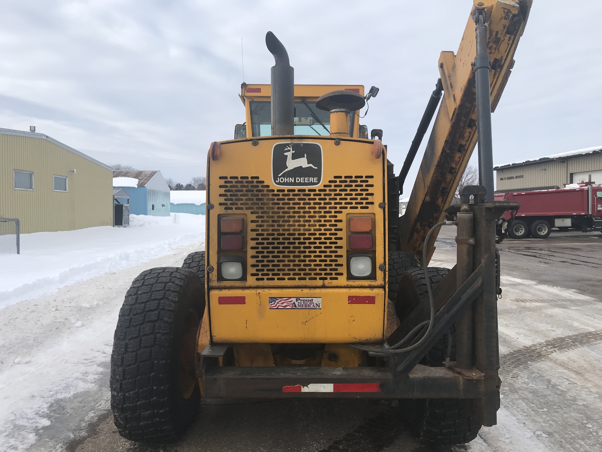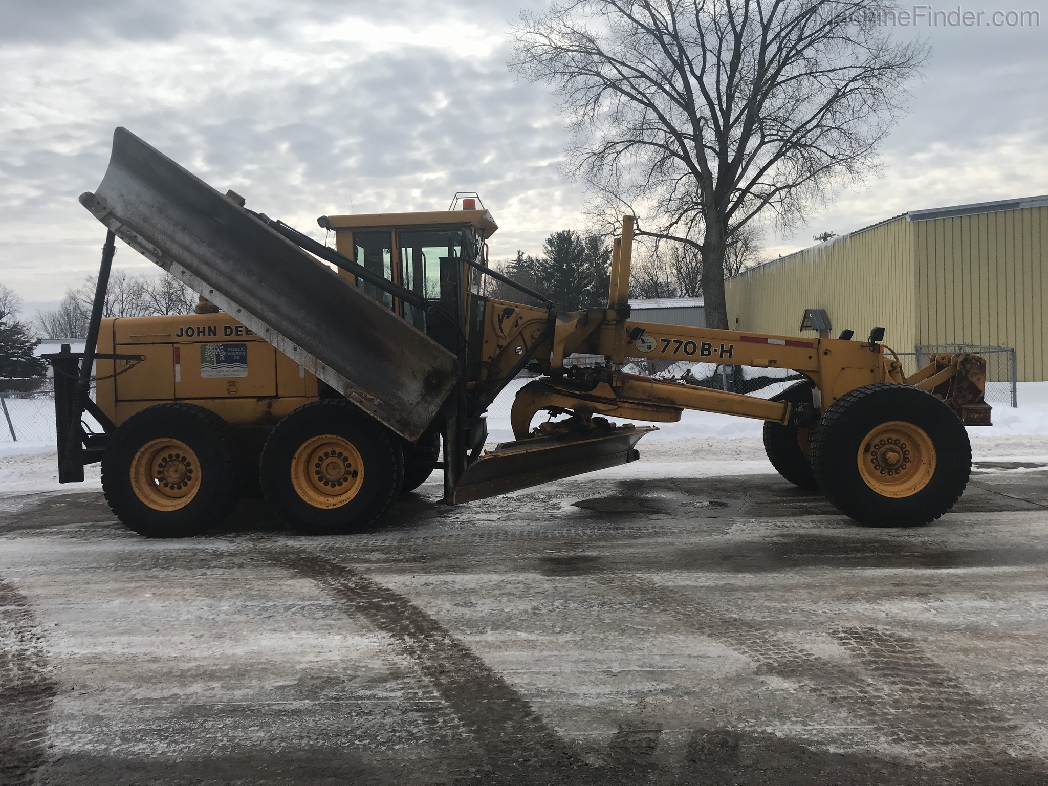 1 owner Govt. bought new from us in 1992 and kept inside. Rubber will be 1400-24 rubber GY snow wedges, all 80%. upper & Lower MB Slides are worn and circle wear inserts need tightening, main MB pin is good. Lift cylinder saddle yokes have slight bushing movement. steering system was good at each wheel and had some mvmnt at the center knuckle but not bad. steering cylinders and wheel knuckle bushings were tight. alot of grease all over. straight clean 770BH with front lift and wing. has complete history. Engine and Transmission have no major repairs. original paint almost no rust. NO SCARIFIER TO COME WITH MACHINE